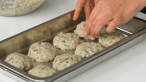 Form small patties from the minced meat by pressing it in your hands.