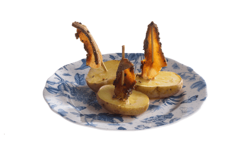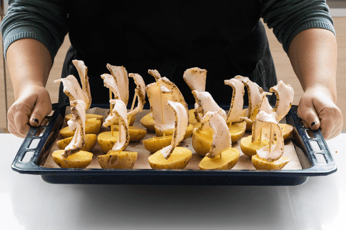 Do the same with all the lard and send the potato boats to an oven preheated to 180 degrees for 40-50 minutes or until the potatoes are done.