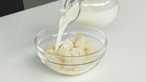 Cut the crusts off the bread, chop the crumb, and soak it in milk.