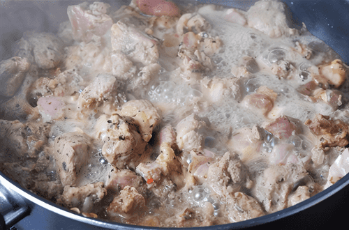 Cut the pork ham meat into 35-40 g cubes, marinate with parsley, lemon juice, pepper, and garlic for 1 hour.