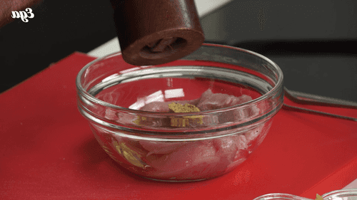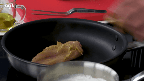 Marinate the fillet with Dijon mustard, olive oil, and salt for 5 minutes.