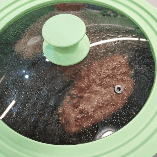 Reduce the heat to minimum and cover with a lid. Cook for about 4 minutes.