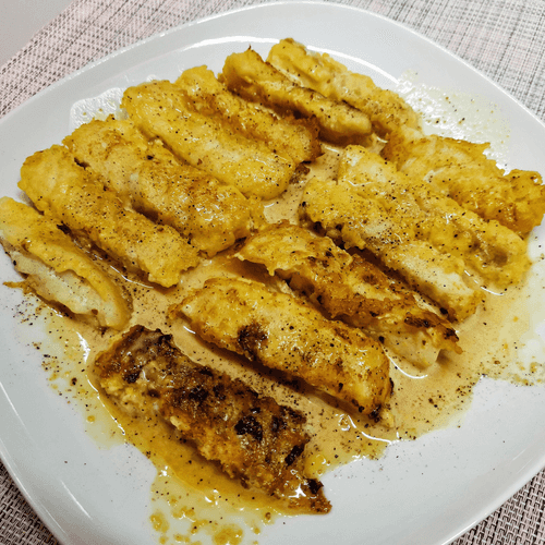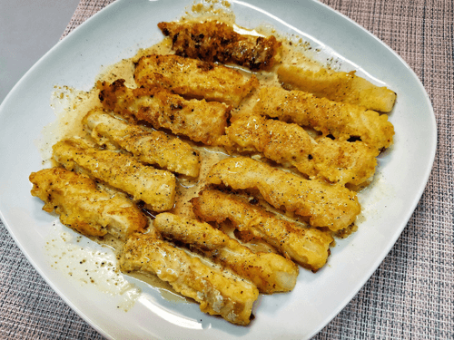 Палочки из трески в овсяном кляре и лимонно-горчичном соусе — это изысканное блюдо, вобравшее в себя традиции русской кухни с нотками современной гастрономии. Нежное филе трески, запечатанное в хрустящем овсяном кляре, сохраняет свою сочность и насыщенный вкус. Легкая кислинка лимона гармонично сочетается с пикантной зернистой горчицей, создавая многослойную вкусовую палитру. Это блюдо идеально подходит как для повседневного ужина, так и для праздничного стола. В сочетании с свежими овощами или зеленью оно приобретает еще большую выразительность. Палочки из трески удобно подавать в качестве закуски или основного блюда, дополняя легким соусом, который подчеркивает натуральный вкус рыбы. Простота приготовления делает его доступным даже для начинающих кулинаров, а его изысканный вид и утонченный вкус порадуют самых требовательных гурманов.