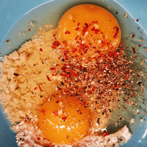 Add two eggs.
