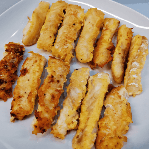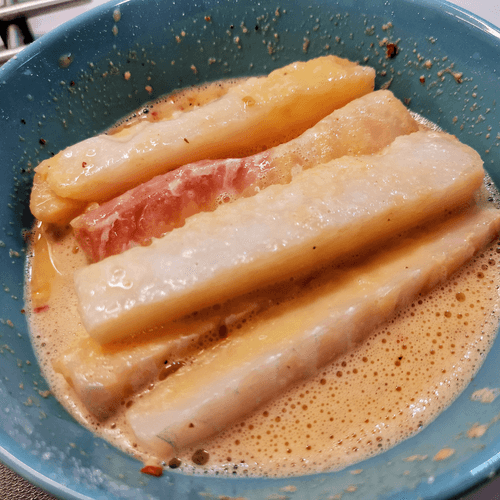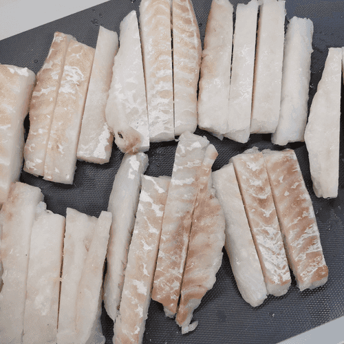 Cut the cod into sticks about 1.5 cm thick.