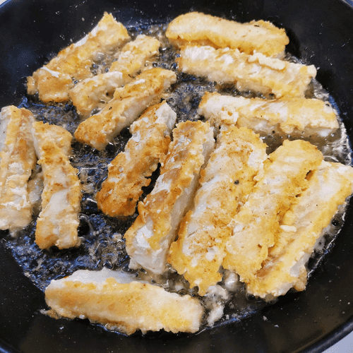 Once the bottom side is browned, flip it. Fry on all sides until golden crust forms.