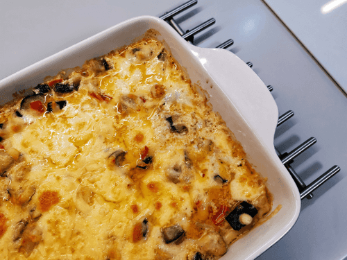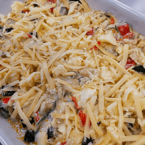 Vegetable stew with suluguni cheese in the oven