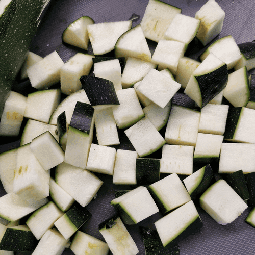 Cut the zucchini into cubes.