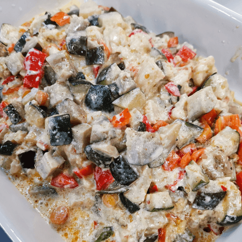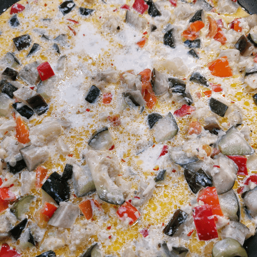 Cut the eggplant into cubes.