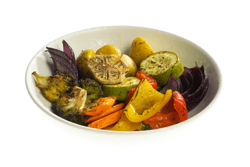Oven-baked vegetables can be served as a main dish or as a side.