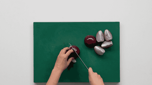Cut the red onion into quarters.