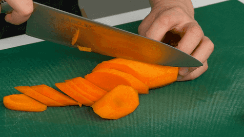 Peel the carrot and slice it into rounds about one centimeter thick.