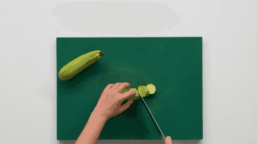 Slice the zucchini into half-moons, about one centimeter thick.