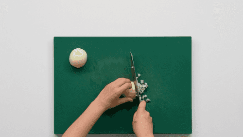 In a large skillet, heat the oil and sauté the onion until golden brown, stirring constantly.