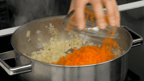 Add the carrot and continue frying, stirring, over medium heat for 5–7 minutes.