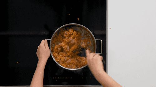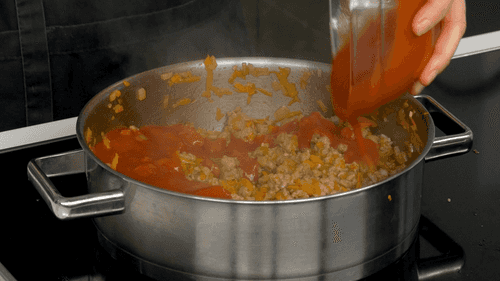 Add the minced meat to the pan and fry for a few minutes until it changes color.
