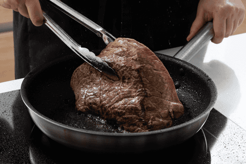 Wash the meat (oguzok, kostrets, okovalok), salt it, and place it whole in a pan, then fry on all sides until a golden crust forms on the meat.