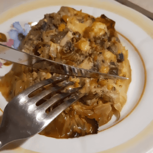 Baked cabbage with mushrooms, cheese, and eggs is a cozy and hearty dish that embodies the simplicity and richness of Russian cuisine. It harmoniously combines the tenderness of cabbage, the aroma of mushrooms, and the creamy softness of cheese, creating an incredible flavor bouquet. The origins of this dish trace back to traditional village recipes where simple ingredients were transformed into culinary masterpieces at home. Baking the cabbage makes it juicy, while the mushroom filling adds richness and spiciness. The addition of cheese completes the composition with a pleasant stretchy texture. This dish is perfect for family dinners, warms you in cold weather, and delights with its depth of flavor. It can be served as a standalone dish or as a side to meat. Easy to prepare yet exquisite in taste — it will become a favorite treat on any table.