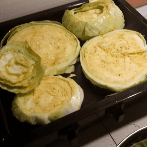 Then place it on a baking sheet and brush with a mixture of vegetable oil, spices, and salt on both sides.