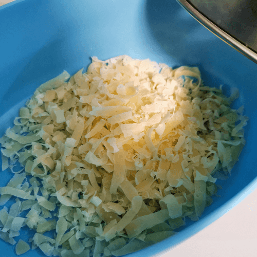 Grate the cheese on a coarse grater.