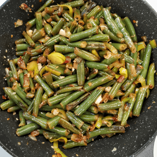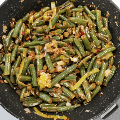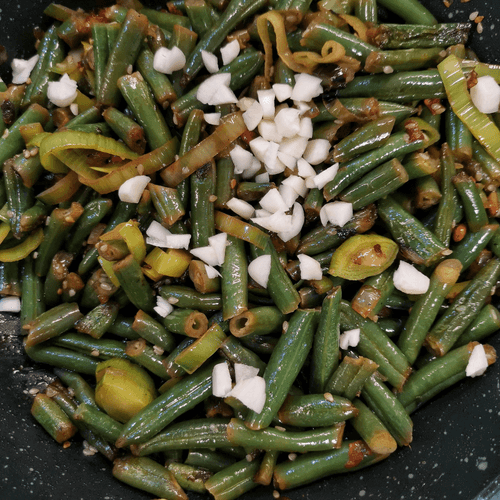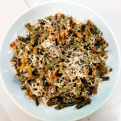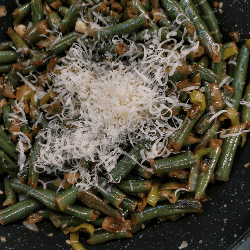 Green beans with cheese, onion and garlic