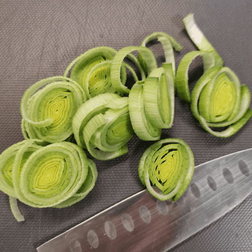 Cut the leek into rings.