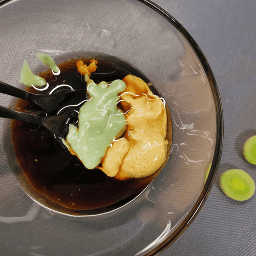 Then add wasabi and oil.