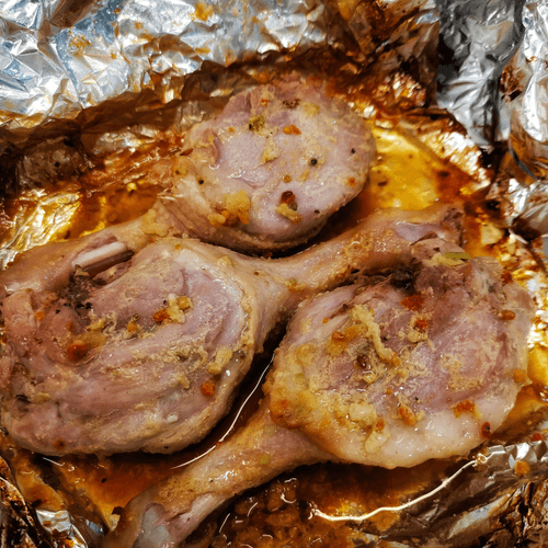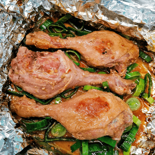 Baked duck leg hunter-style is a true embodiment of French cuisine, combining refined taste and rustic simplicity. This recipe has its roots in the traditions of hunting feasts, where game was prepared with rich marinades and spicy seasonings that enhance the meat's flavor. The duck leg, infused with tangy soy sauce, sharp mustard, and spicy wasabi, acquires a rich aroma and a tender, melt-in-the-mouth texture. Baking in foil preserves juiciness, while the final roasting with leeks adds a subtle sweetness. This dish pairs perfectly with a glass of red wine and a side of roasted vegetables, creating a rich gastronomic experience to enjoy in the cozy atmosphere of a home dinner or at a festive table.