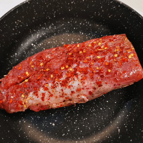 Sprinkle with dried basil and black pepper on top. Add a little salt.
