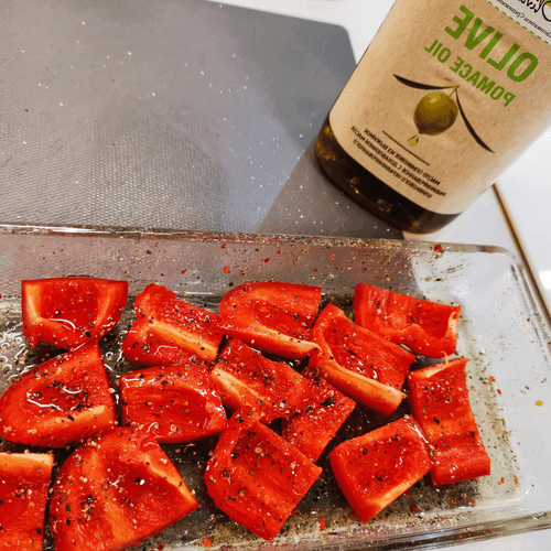 Transfer the meat to a dish along with the bell pepper. Place the dish in the oven for 15 minutes at 200 degrees.