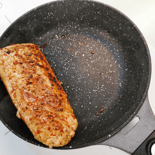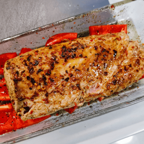 Pork tenderloin baked with sweet peppers is an elegant dish of French cuisine that embodies simplicity and sophistication. The aroma of fresh herbs, rich notes of bell pepper, and tender, juicy meat create a delightful symphony of flavors. Legend has it that such recipes originated in France as a way to highlight the natural taste of meat with minimal seasoning. Searing in a hot pan seals in the juices while baking in the oven perfects the texture. This dish pairs wonderfully with light red wine, creamy mashed potatoes, or a fresh salad. It can be served for a cozy family dinner or a formal reception, as its elegance and richness of flavors make it truly versatile.