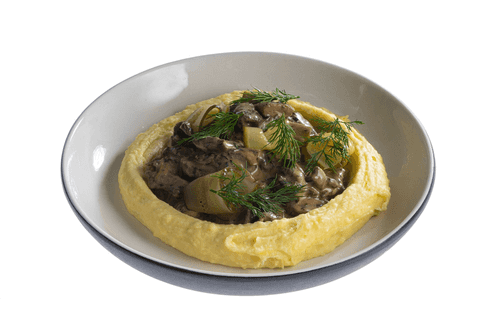 Beef Stroganoff is a legendary dish of Russian cuisine that carefully preserves the traditions of the 19th century. Originally created for gourmets, it combines tender slices of beef sautéed with onions, cream, and mushrooms to create a rich, velvety flavor. This classic version includes porcini and champignon mushrooms that add a forest aroma and depth to the dish. The creamy sauce gives a silky texture, while dill and pickles add fresh and tangy notes. Served with mashed potatoes, it becomes an ideal dish for cozy family dinners. Beef Stroganoff not only delights with its taste but also possesses historical charm, reminding us of times when every meal was an event.
