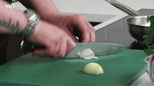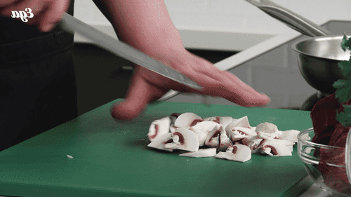 Cut the champignons into sectors. Cut the white mushrooms into pieces of the same size.