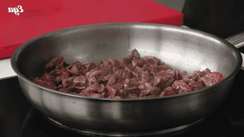 Salt the meat as well, add the fried mushrooms to it, and continue frying for another 3-4 minutes.