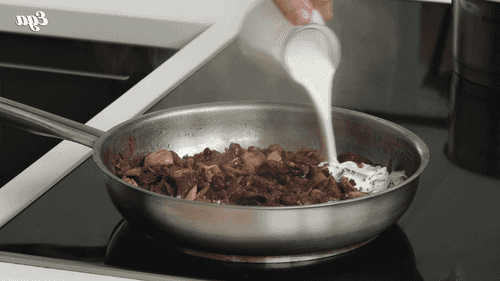 Add 2 tablespoons of water and pour in the cream. Simmer on low heat for 7-8 minutes.