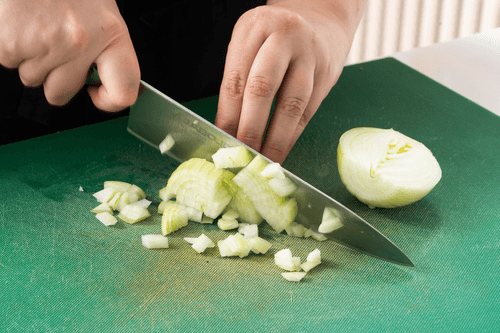 Cut the onion into large cubes.