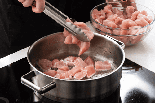 Cut the turkey breast into pieces the size of half a matchbox.