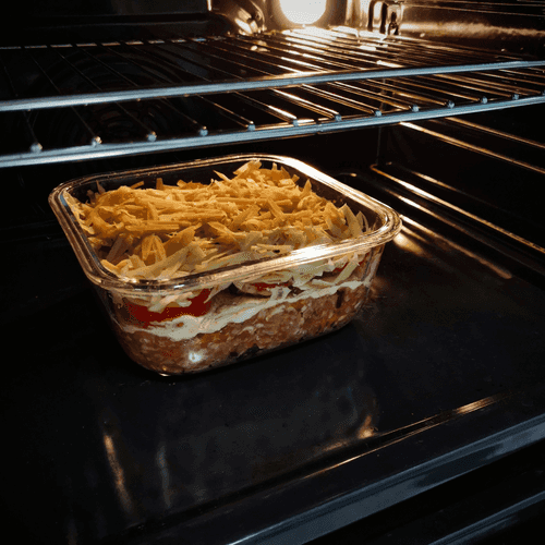 Spread the minced meat on the bottom of a fireproof dish.
