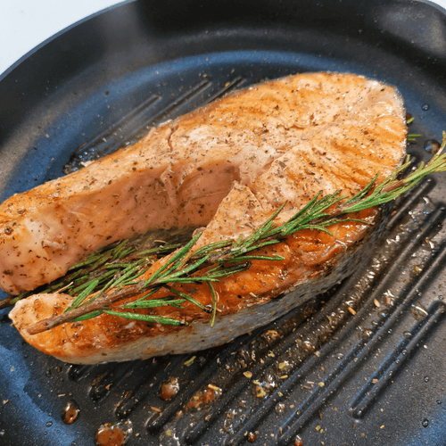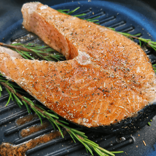 Salmon steak fried with rosemary