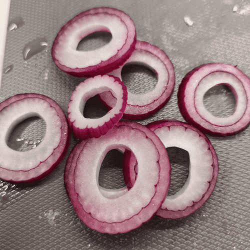 Slice the onion into rings and use it when serving.