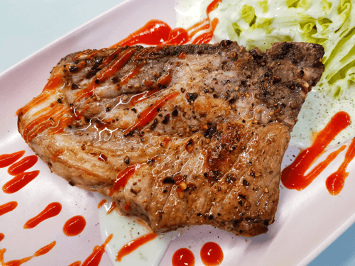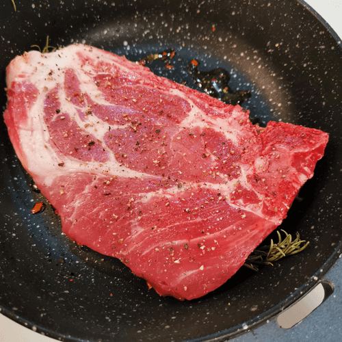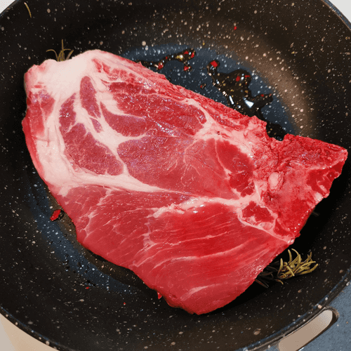 Marbled pork neck steak is a true delight for gourmets, inspired by the traditions of French cuisine. Its tender texture and rich flavor, enhanced by the aroma of fresh rosemary and spicy seasonings, make it an ideal choice for an exquisite dinner. This recipe embodies the art of cooking, where the simplicity of ingredients reveals the depth of flavor nuances. Cooked in a pan with olive oil and chili, the steak acquires a subtle spicy aroma and an appetizing crust, while slow cooking under a lid preserves its juiciness. Served with a glass of red wine, this steak becomes the embodiment of French culinary chic. Such a recipe is perfect for both a romantic evening and a cozy family dinner.