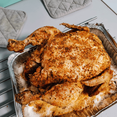 Crispy salt-roasted chicken is a simple yet exquisite dish of Russian cuisine, captivating with its golden crust and rich herbal aroma. The tradition of roasting on salt has roots in ancient village recipes where salt served as an ideal heat conductor for even cooking. Bay leaves and rosemary infuse the meat with subtle spicy notes, while the garlic-sour cream sauce adds tenderness and depth to the flavor, creating a perfect pairing with the crispy skin. Chicken prepared this way is great for both festive gatherings and cozy family dinners. It can be garnished with a light salad or roasted vegetables to highlight its magnificent taste. This dish combines the simplicity of ingredients with a rich and intense flavor.