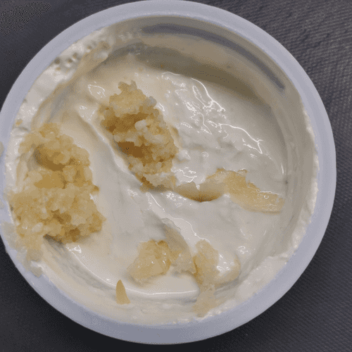 Press garlic into the sour cream.