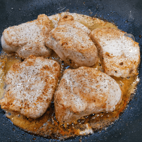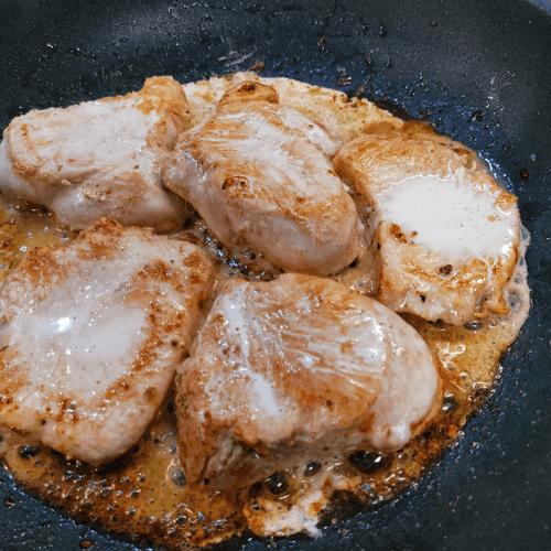 After 3 minutes, flip it over, reduce the heat, and pour in the cream.