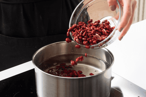 Soak the beans in water for 1.5 hours, then boil for 1.5–2 hours until cooked.