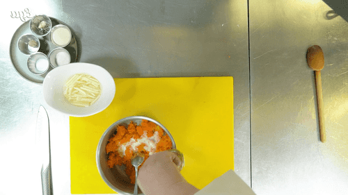 Boil the carrot, then grate it on a fine grater.