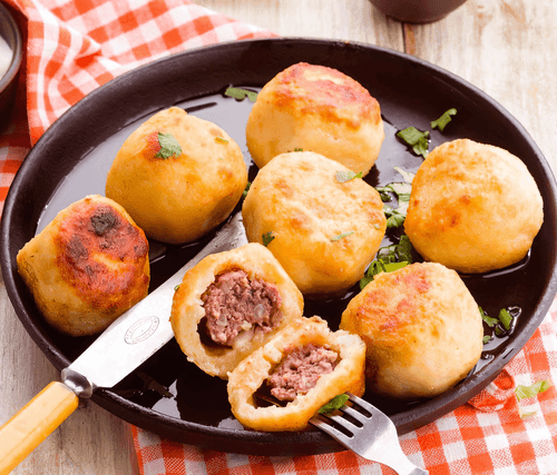 Potato balls with meat and sour cream are a cozy dish of Russian cuisine that evokes the homey taste of grandmother's treats. Tender potatoes turned into soft dumplings envelop juicy minced meat, creating a harmony of textures. Historically, such dishes originated in rural homes where simple ingredients were skillfully combined into hearty and appetizing treats. Fried to a golden crust and soaked in sour cream, these balls acquire a rich creamy flavor that pairs wonderfully with the aroma of fresh herbs. They can be served as a standalone dish or alongside a light salad, adding traditional home warmth to the meal.