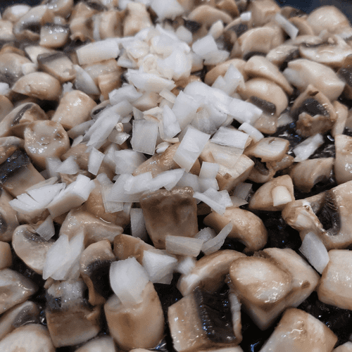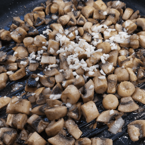 Send the coarsely chopped mushrooms to a heated pan with butter.