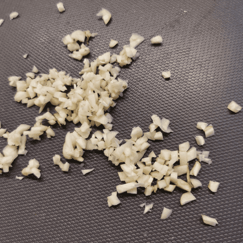 After another 3-4 minutes, add garlic, stir, and reduce the heat.