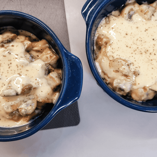 Tender julienne with three types of cheese is a true embodiment of French gastronomy, where creamy tenderness, the aroma of mushrooms, and the richness of cheeses combine. The dish's roots go back to the classics of French cuisine, where the refinement of taste and exquisite combinations of ingredients are valued. The julienne becomes velvety thanks to cream and cottage cheese, while the combination of mozzarella and parmesan gives it subtle spicy notes. Baked to a golden crust, it is perfect for a cozy dinner or a festive table. The flavor is filled with creamy texture, light acidity from the cheese, and softness from the mushrooms, creating harmony in every bite. Served hot in small forms as a delicate treat that awakens appetite and admiration for French culinary art.